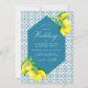 Carreaux bleu sicilien Faire-part de mariage citron bois d'été