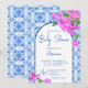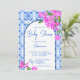 Invitation Carreaux bleus et bougainvillea élégant Baby Showe