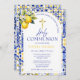 Invitation Carreaux Bleus Méditerranéens Citron Première Comm