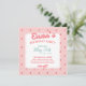 Carré avec un thème élégant de fraises. Comprend un détail de dentelle, des polices manuscrites et un nœud ruban. A une atmosphère de thé à la campagne ou de pique-nique. Idéal pour l'anniversaire d'une fille ou d'une jeune adulte, la Galentine's Day, la Saint-Valentin, une réunion de petites amies, ou même une baby shower. Une palette de fraises avec un rouge rubis, un rose pastel / rose blush, un vert menthe mat / sauge, et un blanc de nappe.