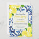 Plein de charme méditerranéen, elle a trouvé son plat principal Carrelage bleu citron Citron Fruit Bridal Shower Invitation transportera vos invités à un été sicilien ensoleillé. Doté d'un citron plein de vie, niché au milieu d'un décor de carreaux italiens bleus et blancs. Venez profiter de l'abondance de la saison et fêtez le prochain MRS. avec cette invitation fantaisiste et inspirante. Laissez le citron gai et la palette de couleurs rafraîchissantes allumer un sentiment d'émerveillement et d'anticipation tandis que vos proches se réunissent pour prendre une douche à l'Épouse. Cette magnifique invitation donne le ton d'une douche nuptiale d'été vraiment mémorable, où la chaleur de la Méditerranée rencontre le pur bonheur d'un nouveau chapitre de la vie.