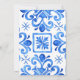 Carreaux bleus Bougainvillea et citron Amalfi Positano Cartes d'invitation baby shower de style méditerranéen modèle Maroc style frontière sculptée, neutre pour le genre.