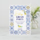 Invitation Carrelage bleu italien à l'aquarelle pour la remis