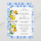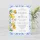 Invitation Carrelage bleu italien aquarelle citron mariage
