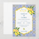 Célébrez votre journée spéciale avec cet élégant faire-part de mariage d'inspiration méditerranéenne. Avec des citrons vibrants et des carreaux bleus complexes, il donne un ton gai et intemporel à votre mariage. Parfait pour les mariages d'été ou de destination !