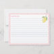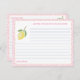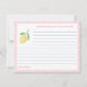 Conseil pour maman d'être carte design orné d'un simple citron aquarelle avec des feuilles verts, contre un motif en carreaux rose et blanc (extrait d'un motif vintage) pour correspondre à mes modèles d'invitation baby shower dans la même couleur. Il y a aussi des accents de texte rose gras.