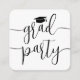 Ces invitations de remise de diplômes sont de petite taille, mais grandes par leur simplicité élégante. Annoncez la réussite du diplômé et invitez la famille et les amis à célébrer avec des cartes d'invitation de fête de fin d'études miniatures élégantes. La petite taille de carte de visite carrée les rend faciles à insérer avec les annonces de remise de diplômes ou à distribuer à la famille et aux amis (elles ne sont pas livrées avec des enveloppes). Vendues en paquets à un prix abordable, ces encarts offrent une option chic pour rester dans les limites d'un budget. Le texte de ce modèle est simple à personnaliser, et les couleurs peuvent être personnalisées à l'aide de l'outil de conception Zazzle. Le design moderne noir et blanc présente un style de calligraphie manuscrit avec une coiffe de diplômé et une typographie classique élégante. Cette carte d'invitation