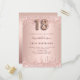 Une invitation moderne, élégante et glamour pour la fête du 18e anniversaire d'une fille. Un faux rose or à l'apparence métallique arrière - plan avec une élégante parties scintillant d'or faux rose goutte à goutte, peinture goutte à goutte. Le nom est écrit avec un rose moderne de couleur or foncé à la main écriture style. Personnalisez et ajoutez les détails de votre fête. Le numéro 18 est écrit avec une police de style ballon, script. Conseil : Si vous ne voulez pas qu'il ressemble à une carte postale, cliquez sur customiser, allez à l'arrière et retirez le séparateur et le timbre postal.