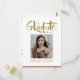 2023 Modern Gold Script tendance Photo Graduation Party Invitation Postcard. Célébrez la grade avec cette carte d'invitation design, simple et tendance pour la remise de diplômes photo. Tous les textes sont pré-arrangés pour que vous personnalisiez facilement et rapidement avec vos propres détails.