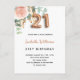 Une élégante invitation à une fête de 21e anniversaire. Un arrière - plan blanc chic. Décoré d'or rose et de rose pastel rose vif, de fleurs roses, de feuilles d'eucalyptus verts, de sprigs, de verdure et de faux sprigs d'or. Personnalisez et le nom et les détails du parti. Lettres noires et dorées. Le nom est écrit avec un script de style moderne écrit à la main. Le numéro 21 est écrit avec une police de style ballon doré. Retour : Couleur arrière - plan rose or, design carte postale. Conseil : Si vous ne voulez pas qu'il ressemble à une carte postale, cliquez sur customiser, allez à l'arrière et retirez le séparateur et le timbre postal.