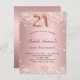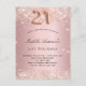 Pour une soirée élégante de 21ème anniversaire. Arrière - plan de dégradé rose vif. Décoré avec de la poussière de parties scintillant en faux or rose. Personnalisez et ajoutez un nom et des détails du parti. Le nom est écrit avec un script de style écrit à la main. Le numéro 21 est écrit avec une police de style ballon. Conseil : Si vous ne voulez pas qu'il ressemble à une carte postale, cliquez sur customiser, allez à l'arrière et retirez le séparateur et le timbre postal.