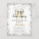 Cette invitation 25e anniversaire de Mariage à thème argent et champagne sur une carte postale est parfaite pour tout couple marié qui souhaite trinquer à un fabuleux 25 ans ensemble ! Le design comprend une paire de belles verres remplis de champagne aquarelle, une bordure en parties scintillant argentée et une élégante typographie manuscrite. Mettez facilement à jour tous les détails en utilisant le modèle fourni. Veuillez contacter le concepteur pour toute question concernant ce design ou pour tout produit correspondant.