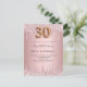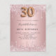 Une invitation moderne, élégante et glamour pour une fête de 30e anniversaire. Un rose poussiéreux, un faux arrière - plan rose à l'apparence métallique avec fausse goutte de parties scintillant, la peinture goutte à goutte. Le nom est écrit avec un rose moderne de couleur or foncé à la main écriture style. Personnalisez et ajoutez les détails de votre fête. Le numéro 30 est écrit avec une police de style ballon, script. Conseil : Si vous ne voulez pas qu'il ressemble à une carte postale, cliquez sur customiser, allez à l'arrière et retirez le séparateur et le timbre postal.