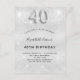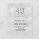 Une invitation moderne, élégante et glamour pour une fête de 40e anniversaire. Un arrière - plan faux argenté, décoré de poussière de parties scintillant. Personnalisez et ajoutez votre nom et les détails de votre fête. Le numéro 40 est écrit avec une police de style ballon, script. Retour : arrière - plan argent, design de carte postale. Conseil : Si vous ne voulez pas qu'il ressemble à une carte postale, cliquez sur customiser, allez à l'arrière et retirez le séparateur et le timbre postal.