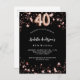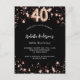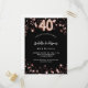 Invitation Carte Postale 40e anniversaire noir rose étoiles d'or