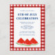 Famille Invitation et amis à votre fête avec cette carte postale Invitation 4 juillet. Il est décoré de pastèques aquarelles sur un arrière - plan de buffle rouge et blanc. Facile à personnaliser. Cette invitation festive est parfaite pour n'importe quel thème de célébration du quatrième juillet. Utilisez l'outil de conception pour modifier la taille, le style ou la couleur du texte. Parce que nous créons notre oeuvre, vous ne trouverez pas cette image exacte d'autres designers. Aquarelle originale © Michele Davies.