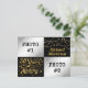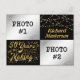 Ajoutez deux photos (une de jeunesse et une actuelle) de la personne fêtant son anniversaire à cette carte d'invitation de fête noire et or annonçant qu'ils ont 50 ans d'existence !