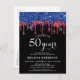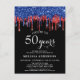 Invitation Carte Postale 50e Anniversaire Élégant Bleu Rouge Noir Paillette