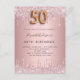 Une invitation moderne, élégante et glamour pour un 50ème anniversaire. Un rose poussiéreux, un faux arrière - plan rose à l'apparence métallique avec fausse goutte de parties scintillant, look goutte à goutte de peinture. Le nom est écrit avec un script de style moderne en lettres de couleur gris foncé. Personnalisez et ajoutez les détails de votre fête. Le numéro 50 est écrit avec une police de style ballon, script. Conseil : Si vous ne voulez pas qu'il ressemble à une carte postale, cliquez sur customiser, allez à l'arrière et retirez le séparateur et le timbre postal.