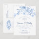 Elégant bleu rose floral 50e anniversaire rose floral invitation carte postale.