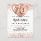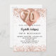Pour un 70ème anniversaire élégant. Un arrière - plan blanc. Décoré d'or rose, de faux parties scintillant roses, de mousseux et de ballons. Personnalisez et ajoutez un nom, ainsi que les détails du parti. Le nom est écrit avec un script de style écrit à la main, numéro 70 avec des polices de style ballon.