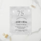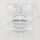 Une invitation moderne, élégante et glamour pour une fête de 75ème anniversaire. Un faux arrière - plan argenté, décoré de parties scintillant, brille. Personnalisez et ajoutez votre nom et les détails de votre fête. Le numéro 75 est écrit avec une police de style ballon, script.