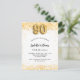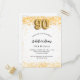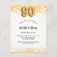 Pour une soirée élégante de 90ème anniversaire. Un arrière - plan blanc chic. Décoré de parties scintillant en faux or, brille. Personnalisez et ajoutez un nom, un âge et des détails de la fête. Le nom est écrit avec un script de style écrit à la main. Numéro 90 avec police de style ballon.