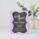 Vous aimerez ce design vintage, élégant et mignon, avec À damiers violet En vichy design motif ! Nous vous avons invitation à notre magasin, Fête des mariées Shop, pour voir ce tableau noir cool sur beaucoup plus de grands produits personnalisables, y compris les boutons poupées girly Bride, Timbres pour mariage modernes, et des invitations à la craie nuptiale à la craie branchée! Merci!