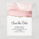 Enregistrez la carte postale du mariage date avec un design élégant et tendance agate. Aquarelle rose rousse avec un look d'agate en marbre subtil et ruban de gloire doré superposé entre les deux.