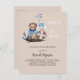 Pour un baby shower célébrant un bébé garçon. Un arrière - plan beige, un garçon en peluche marin. Personnalisez et ajoutez le nom de la mère à être et les détails de la fête. Texte : Ahoy C'est un garçon !