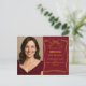 Un arrière - plan bordeaux, décoré d'un arc et d'un cadre jaunes dessinés à la main. Personnalisez et ajoutez une photo, un nom et des détails de la fête.