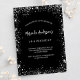 Un arrière - plan noir élégant. Décoré de parties scintillant en faux argent, pétillant. Personnalisez et ajoutez un nom, un âge et des détails de la fête. Le nom est écrit avec un script de style manuscrit