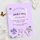 Un arrière - plan violet, couleur lavande. Décoré d'abeilles et de fleurs sauvages peints en violet et rose et d'un grand papillon. Personnalisez et ajoutez un nom et des détails du parti.