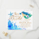 Invitation Carte Postale Aquarelle bleue sirène sous-marine douce texte dor
