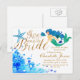 Invitation Carte Postale Aquarelle bleue texte doré de sirène sous-marine d
