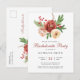 Invitation Carte Postale Aquarelle Blush rose Floral Bachelorette Party