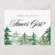 Seras-tu ma fille aux fleurs ? Demandez à votre famille et à vos amis de faire partie de votre fête de mariage avec cette carte de proposition de bois. Il présente une illustration aquarelle d'arbres verts avec typographie moderne. Personnalisez en ajoutant un message. Cette carte de propositions de fleurs de forêt rustique est parfaite pour les mariages d'automne et d'hiver. Des éléments correspondants sont disponibles.
