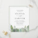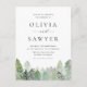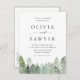 Invitation Carte Postale Aquarelle Snowy Evergreens Mariage d'hiver QR Code