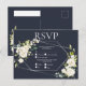 Invitation Carte Postale Argent Géométrique Bleu Blanc Floral RSVP