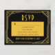 Invitation Carte Postale Art Déco Black Gold RSVP Great Gatsby Mariage