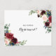 Cette carte postale d'invitation à la femme de chambre d'automne rustique éblouissante et bordeaux est parfaite pour une simple douche nuptiale. Le design est composé de fleurs bordeaux, rouges, navales, bleues et rousses rayonnantes et gracieuses peintes à la main, inspirant la beauté naturelle.