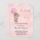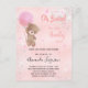 Pour un baby shower célébrant une fille. Un arrière - plan rose, avec de la poussière de parties scintillant en faux argent. Un ours en peluche tenant un ballon rose. Personnalisez et ajoutez le nom de la mère à être et les détails de la fête. Oh Baby! et Bearly sont écrits avec un script de style écrit à la main.