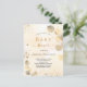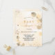 Pour un Baby shower élégant. Un arrière - plan doré à l'eau décoré d'eucalyptus dorés et de poussière de parties scintillant en faux or. Personnalisez et le nom de la mère à être et les détails de la fête. Lettres noires et dorées. Retour : arrière - plan couleur or, design carte postale. Conseil : Si vous ne voulez pas qu'il ressemble à une carte postale, cliquez sur customiser, allez à l'arrière et retirez le séparateur et le timbre postal.