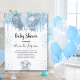 Pour un baby shower, célébrer un bébé garçon. Un arrière - plan blanc chic. Décoré avec des gouttes de faux parties scintillant bleu, l'air dérapant de peinture, des ballons et un mignon petit garçon d'éléphant. Personnalisez et ajoutez le nom de la mère à être le nom et les détails de la fête. Le nom et le texte : Baby shower sont écrits avec un script de style écrit à la main. Retour : conception de carte postale. Conseil : Si vous ne voulez pas qu'il ressemble à une carte postale, cliquez sur customiser, allez à l'arrière et retirez le séparateur et le timbre postal.