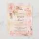 Pour une baby shower de style boho moderne. Un fond métallisé faux rustique rose doré et rose blush. Décoré de fleurs roses et dorées, de roses, d'herbe de la pampa et de papillons. Personnalisez et ajoutez un nom et les détails de la fête.