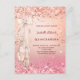 Pour un élégant Quinceañera, 15ème anniversaire. Arrière - plan rose or et dégradé rose. Décoré d'or rose, de poussière de parties scintillant rose et de chaussures de ballerine. Personnalisez et ajoutez le nom, l'âge/le texte et les détails du parti. Le nom est écrit avec un script de style écrit à la main Retour : or rose, dégradé rose arrière - plan, design de carte postale. Conseil : Si vous ne voulez pas qu'il ressemble à une carte postale, cliquez sur customiser, allez à l'arrière et retirez le séparateur et le timbre postal.