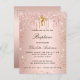 Invitation Carte Postale Baptême blush rose or parties scintillant gouttes