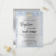 Un baptême moderne et élégant, célébrant un bébé garçon. Arrière - plan métallique argent Faux décoré de faux parties scintillant bleu, étincelants et une croix dorée. Personnalisez et ajoutez un nom et des détails du parti. Lettres de couleur noire.
