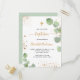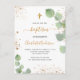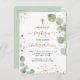 Invitation Carte Postale Baptême eucalyptus vert parties scintillant script