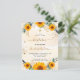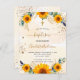 Un arrière - plan blanc et doré décoré de tournesols, de verdure d'eucalyptus et de feuilles dorés et de poussière de parties scintillant en faux or. Personnalisez et ajoutez un nom et des détails de réception. Retour : arrière - plan doré, parties scintillant et carte postale. Conseil : Si vous ne voulez pas qu'il ressemble à une carte postale, cliquez sur customiser, allez à l'arrière et retirez le séparateur et le timbre postal.
